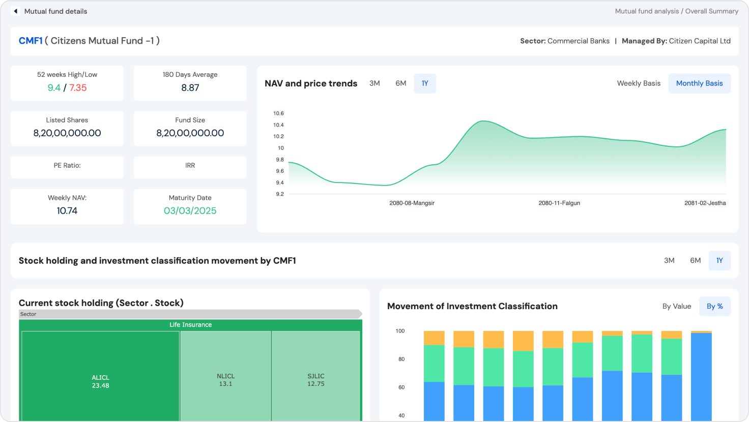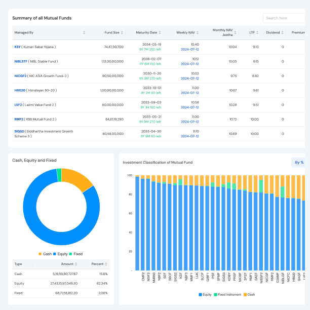 Unlock the full potential of Nepal’s stock market with our Stock Analytics Platform, featuring robust tools for both Floorsheet Analysis and Mutual Fund Analysis.