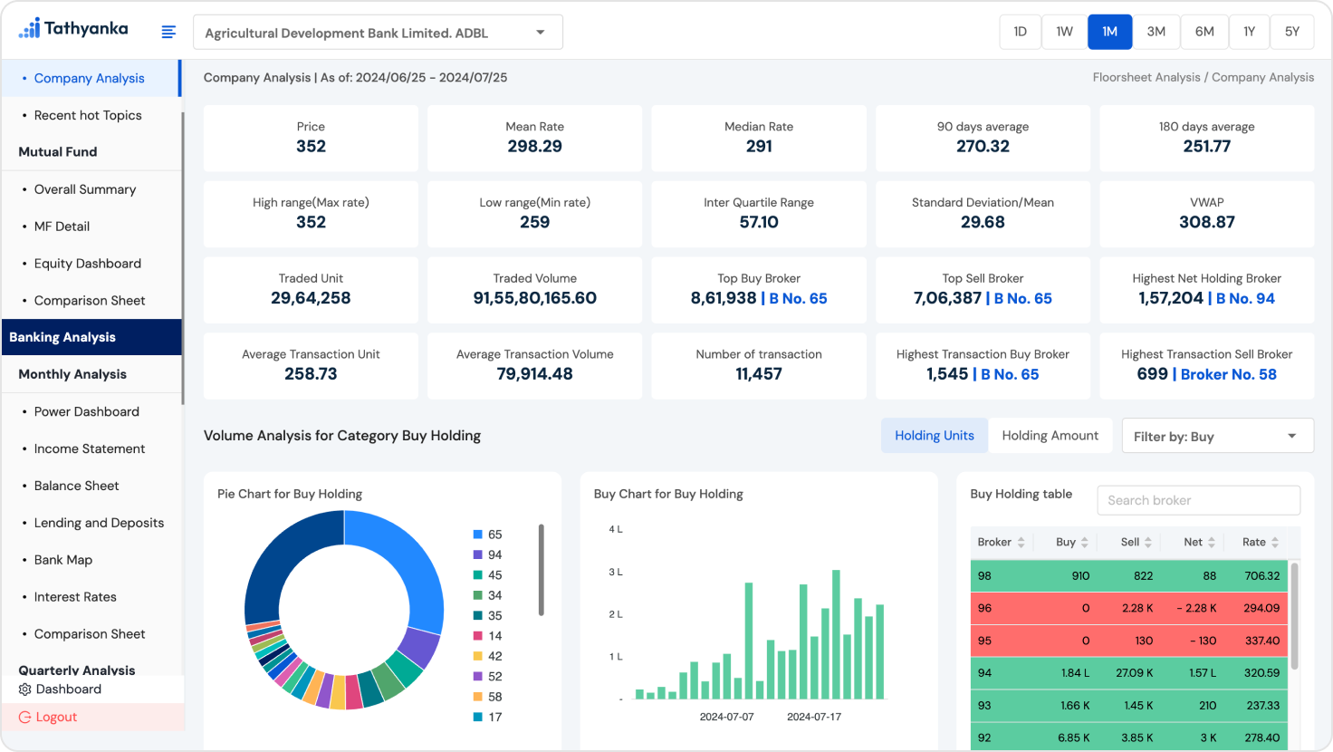 With Floorsheet Analysis, users gain detailed insights into stock trading activity, including price movements, trading volumes, and market depth. This feature enables you to track and analyze stock performance in real time, helping you identify trading patterns and make strategic decisions based on the latest market data.